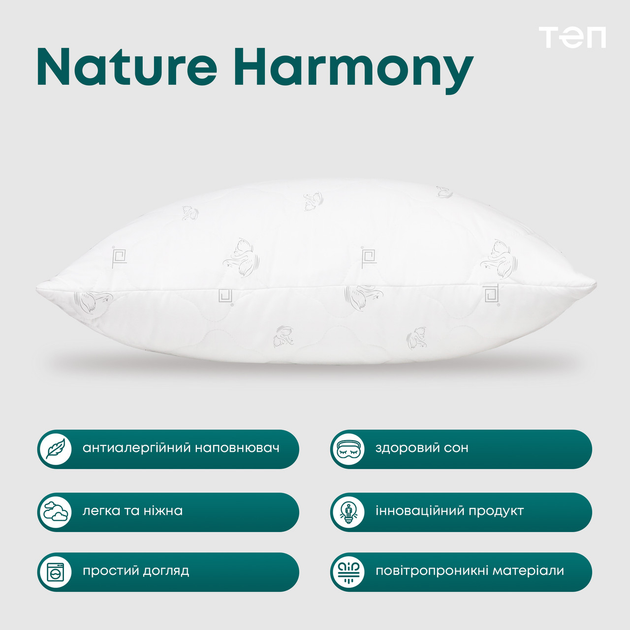 Подушка антиалергенна з волокном, ідентичним натуральному лебединому пуху 70х70 см