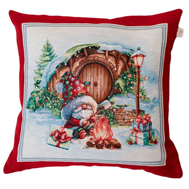 Подушка декоративна новорічна Прованс Гном біля коричневих дверей 45x45 см (037185)