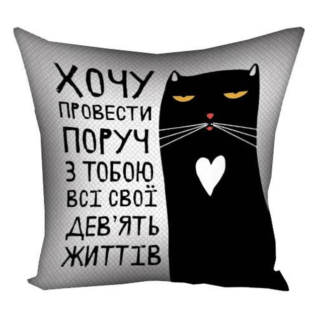 Габардинова подушка з принтом для декору Всі свої дев'ять життів (3P20L065UKR) 50х50 см