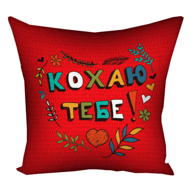 Габардинова подушка з принтом для декору Кохаю тебе червона (3PWOL044) 50х50см