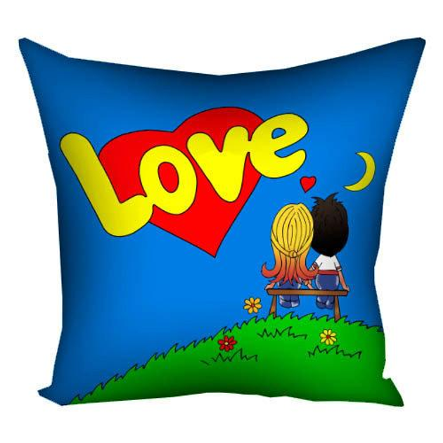 Габардинова подушка з принтом для декору Love is синя (3PPW080) 50х50см