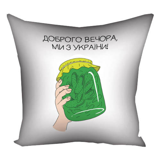 Подушка з принтом габардинова Доброго вечора, ми з України! Банка з огірками 40x40 см