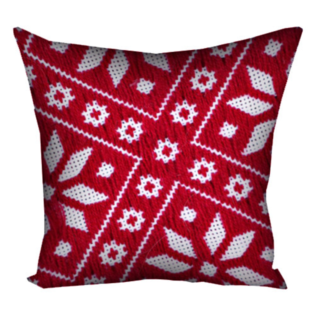 Подушка з принтом габардинова Український орнамент красный с белыми снежинками 40x40 см