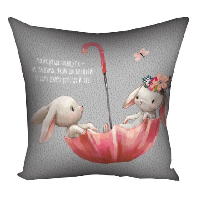 Подушка з принтом габардинова Найкраща подруга Зайчата в зонтике 40x40 см