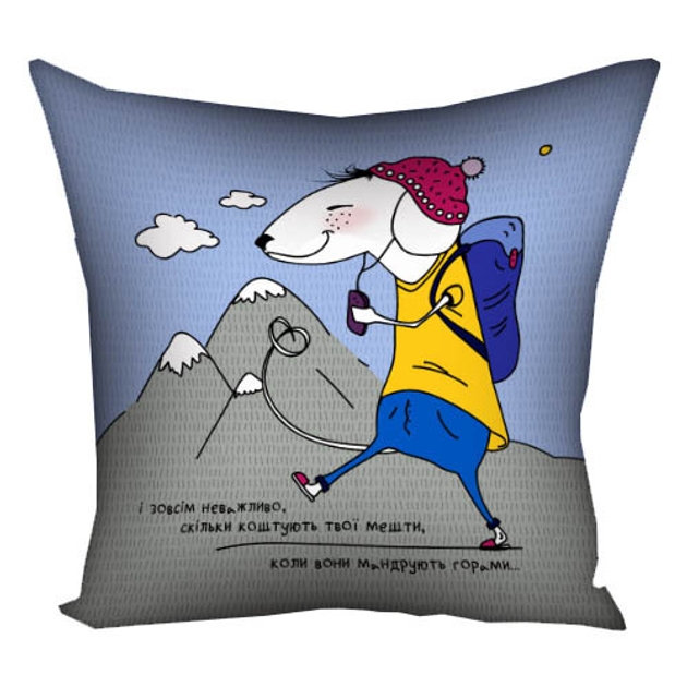 Подушка з принтом габардинова Мандрую горами 40x40 см