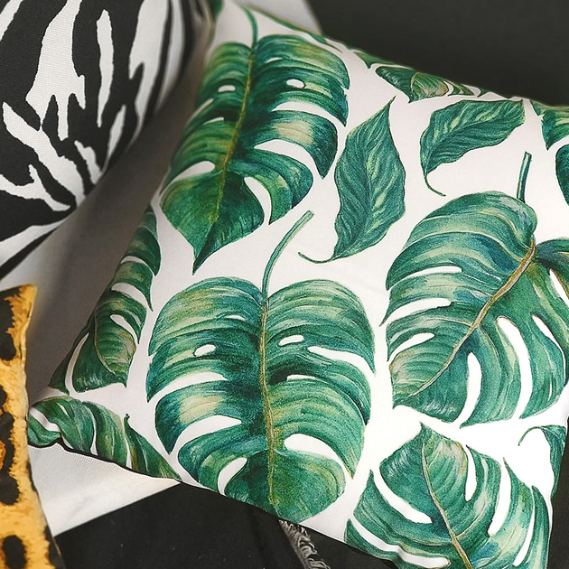 Подушка з принтом габардинова Тропические листья 40х40 см