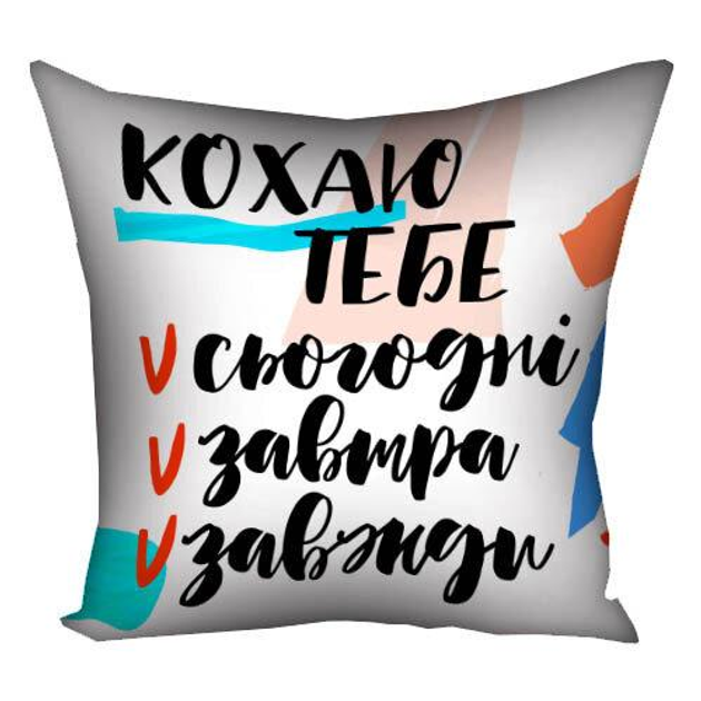 Габардинова подушка з принтом для декору для закоханих Кохаю тебе сьогодні завтра завжди (3P21L025) 50х50