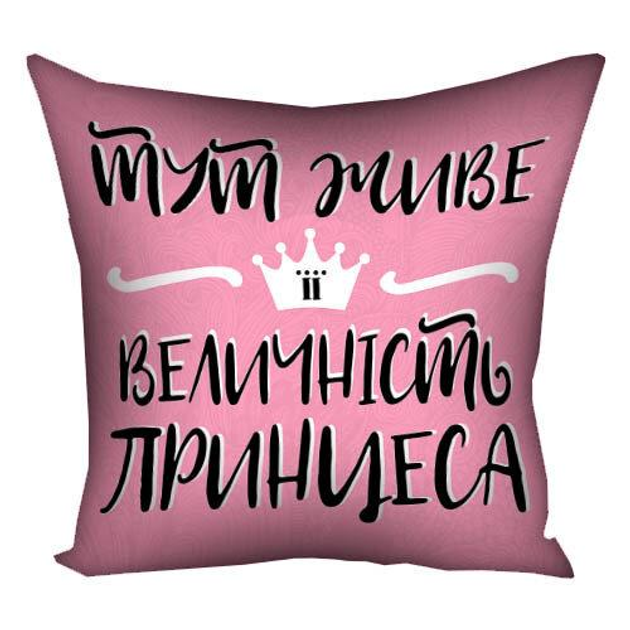 Габардинова подушка з принтом для декору Тут живе її величність принцеса (3P21M030) 50х50 см