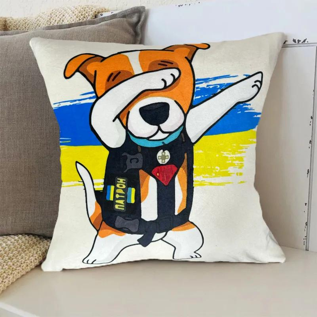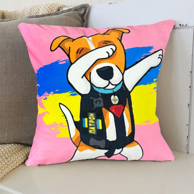 Подушка патріотична 3D Пес Патрон броненосець 2707E Різнобарвна 50х50 см