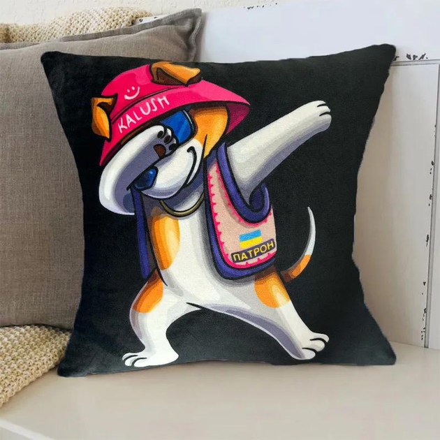 Подушка патріотична 3D Пес Патрон Kalush чорний 2726E Різнобарвна 50х50 см