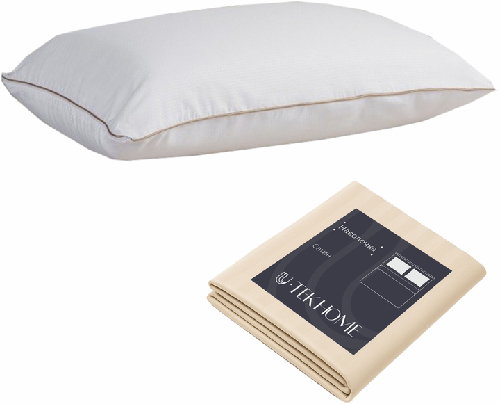 Набір U-tek Подушка Batiste Jean-Paul Синтепух 50x70 см + Наволочка Boston Ivory Beige Stripe Сатин Бежева в смужку 50х70 см