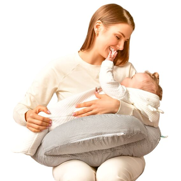 Подушка для годування диванчик 60х70х16 см бавовна антиалергенне волокно, для зручності мами, з блискавкою горошок сірий