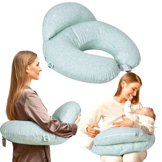 Подушка для годування диванчик 60х70х16 см бавовна антиалергенне волокно, для зручності мами, з блискавкою кошенята м`ята