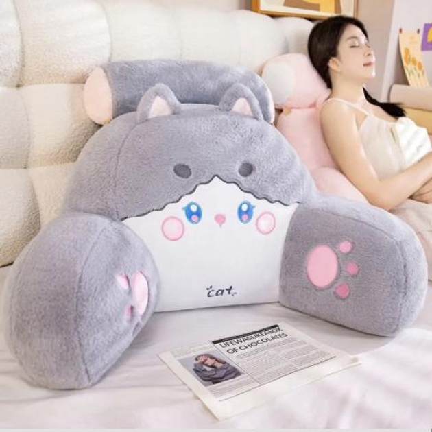 Ортопедична подушка для читання Кіт 65х40, м'яка подушка під спину для читання з додатковою зйомною подушкою