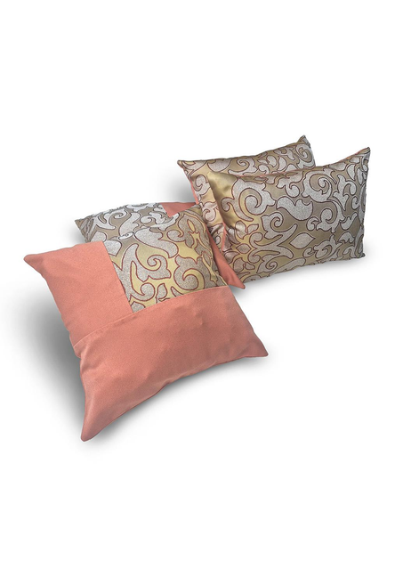 Комплект декоративних подушок Firanka Venzel 40х40см 2шт, 50х30см 2шт, бронзові із золотим і кораловим (п0782)