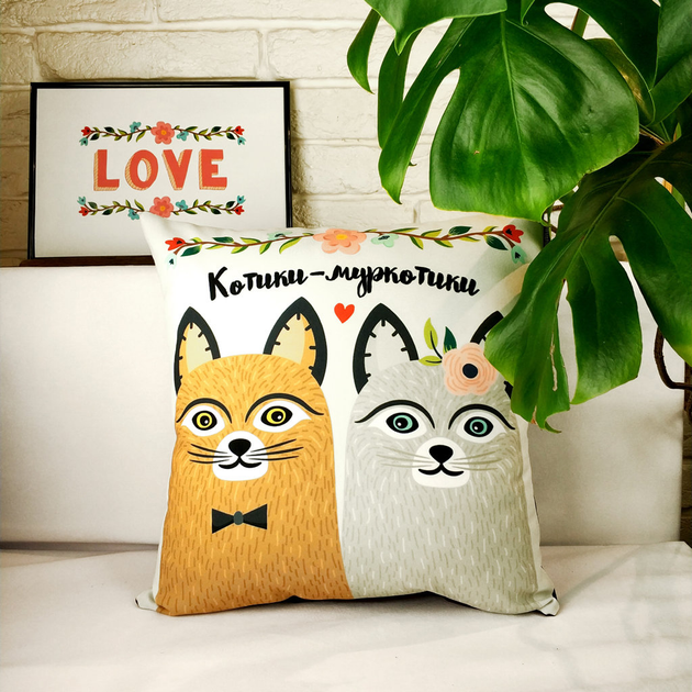 Подушка з принтом габардинова Котики –муркотики 50x50 см