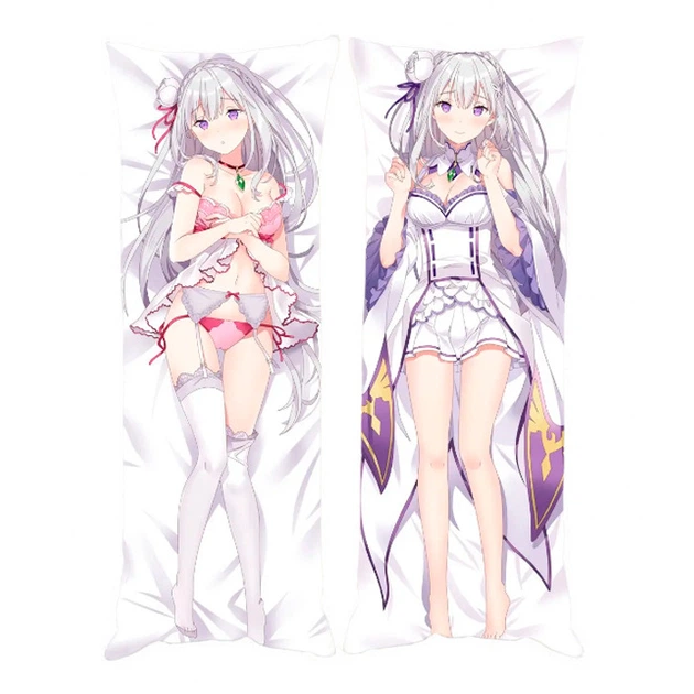 Подушка обіймашка дакімакура Емілія Життя в альтернативному світі з нуля v4 120x40см (21836)