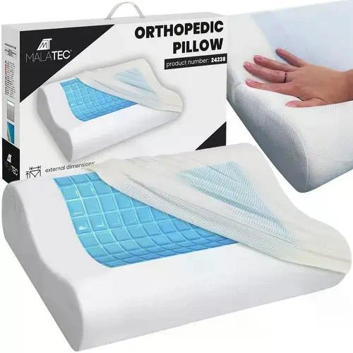 Ортопедична подушка Malatec СР24238 з охолоджуючим гелем, знімний чохол, з ефектом пам'яті, 54х34х10 см, біла