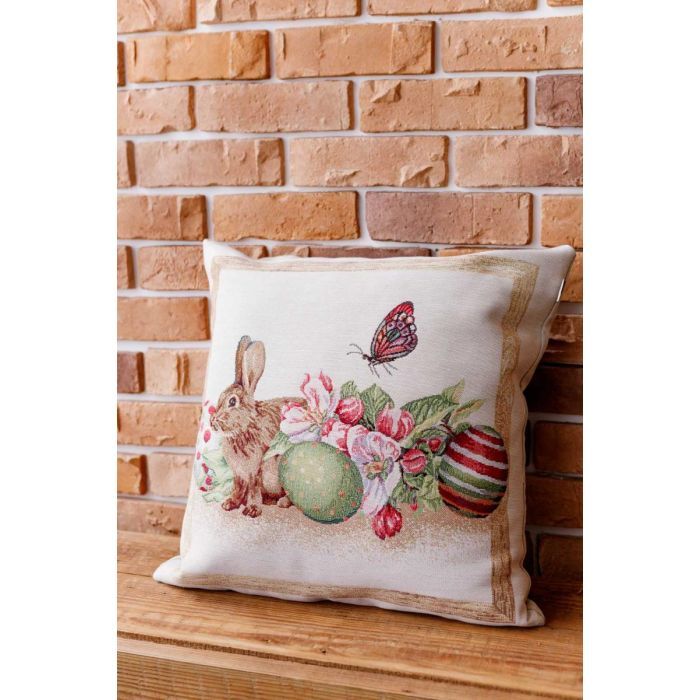 Подушка Прованс декоративна гобеленова Зайчик з писанками і квітами Веснянка 45х45 см (034272) 034272
