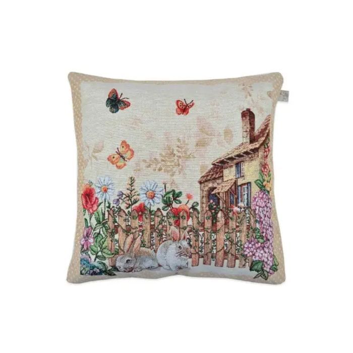 Подушка Прованс гобеленова декоративна Alicia хатинка та кролики 45х45 см (026041) 026041