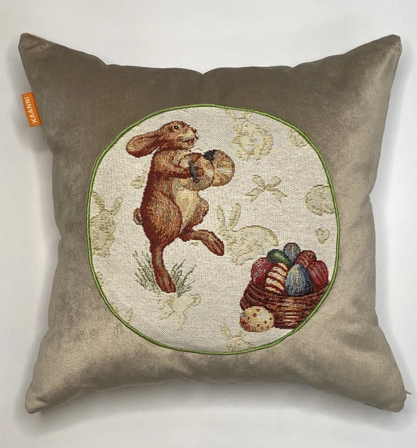Подушка Kaanni Великодні мотиви 4 Зайчик з кошиком 35х35 см 35х35 Бежевий