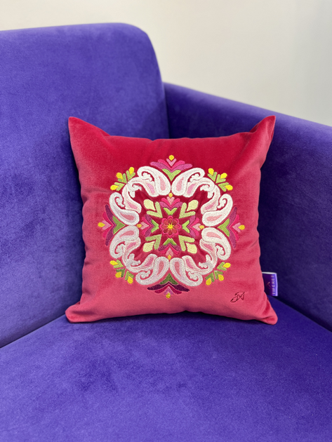 Подушка з вишивкою «Чарівний Еліксир» 3030 см, бордовий оксамит