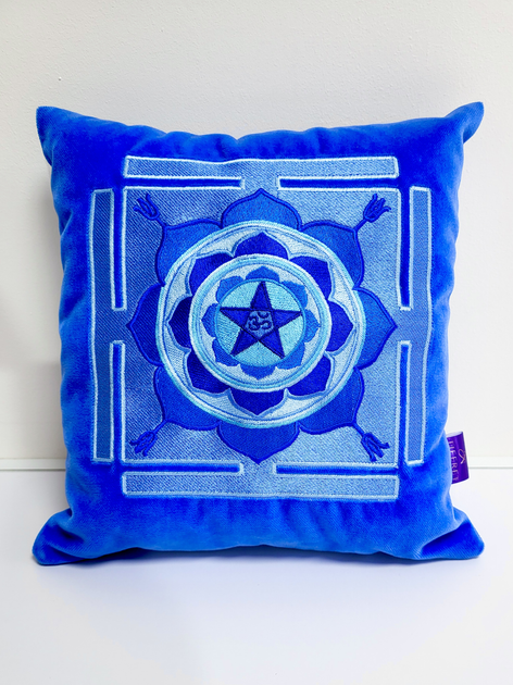 Подушка з вишивкою «Янтра Шива» 3030 см, блакитний оксамит