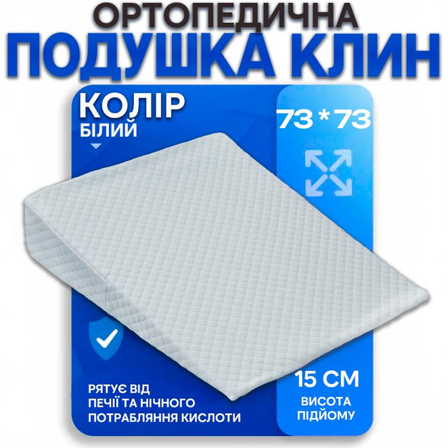 Подушка ортопедична Клин при рефлюксі Клиноподібна подушка для дорослих широка 73х73х15см Olvi біла