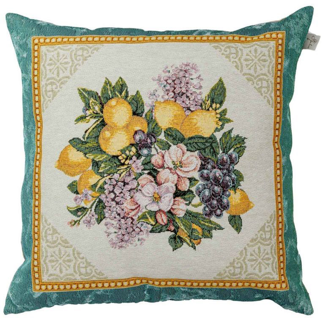 Подушка Прованс Verna Фрукти лимони в золотій рамці декоративна гобеленова 45х45 см (030041) (4823093447271)