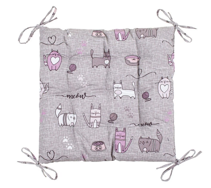 Подушка із зав'язками на стілець Home Line. Кіт на кухні сіро-бузкового кольору-40х40