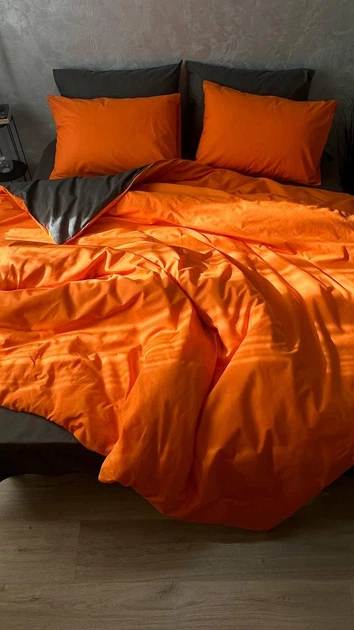 Постільна білизна з гумкою Графіт + помаранчевий, двоспальний розмір 180х215 см, бязь наволочки 70х70, бавовна