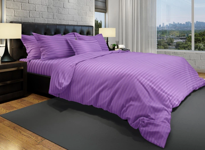 Комплект 70stripesatinlavender At Home постільної білизни Страйп-сатин Півтораспальний 150 * 220 Підковдра на Блискавці на Ш