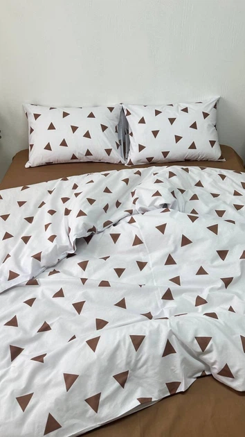 Постільна білизна з гумкою Трикуник кавовий, двоспальний розмір 180х215 см, бязь наволочки 70х70, бавовна