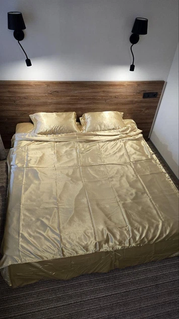 Постільна білизна Атласна Полуторна 145х210 наволочка 70х70 2шт з кантом Золотий (Д-atlas25-05)