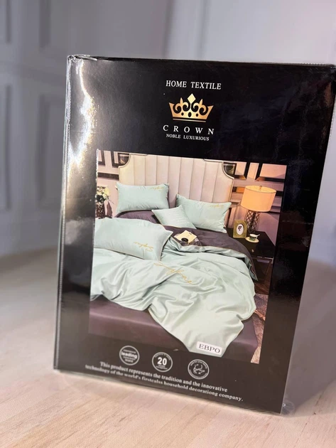 Cатиновий турецький комплект постільної білизни Євро Зелений з бежевим 200 x 220 (121209) наволочки 2 х 70х70 см