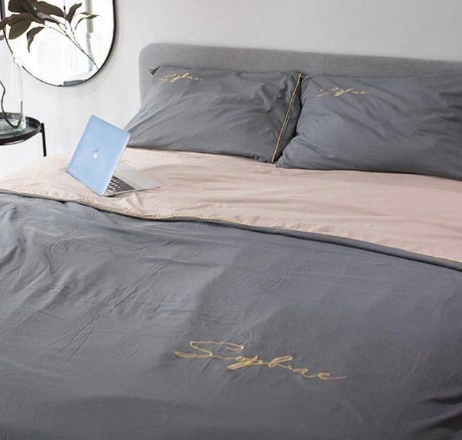 Cатиновий турецький комплект постільної білизни Євро Сірий з бежевим 200 x 220 (121203) наволочки 2 х 50х70 см