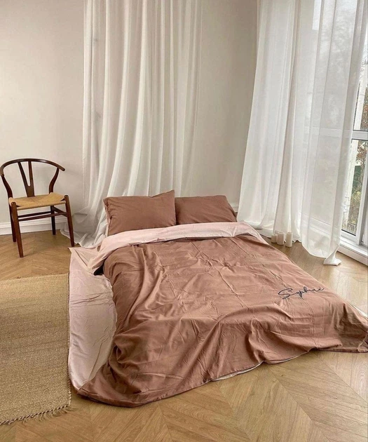 Cатиновий турецький комплект постільної білизни Євро Пудра 200 x 220 (121208) наволочки 2 х 50х70 см