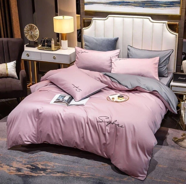Cатиновий турецький комплект постільної білизни Євро Рожевий із сірим 200 x 220 (121204) наволочки 2 х 50х70 см