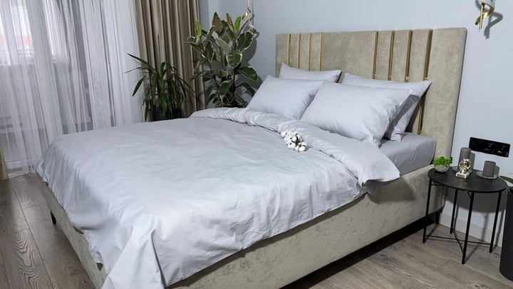Комплект постільноі білизни MG&Lviv Євро 200*220 сатин сірий 1009