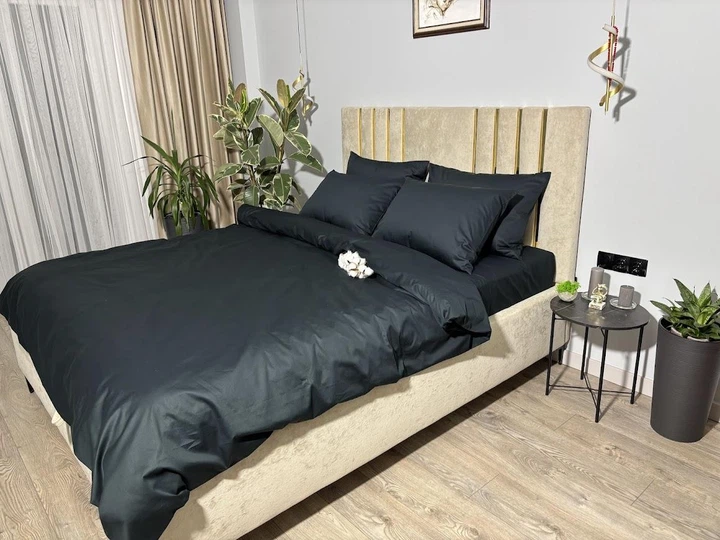 Комплект постільноі білизни MG&Lviv Євро 200*220 сатин чорний