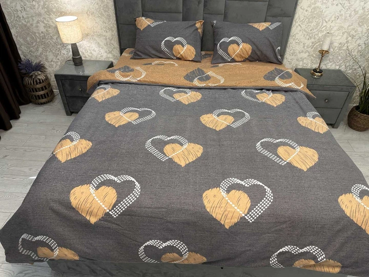 Комплект постільної білизни Катруся фланель двоспальний Серця жовті