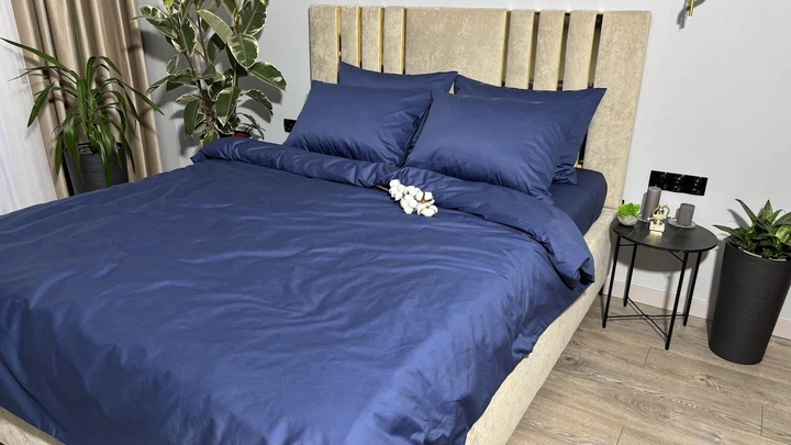 Комплект постільноі білизни MG&Lviv Євро 200*220 сатин синій
