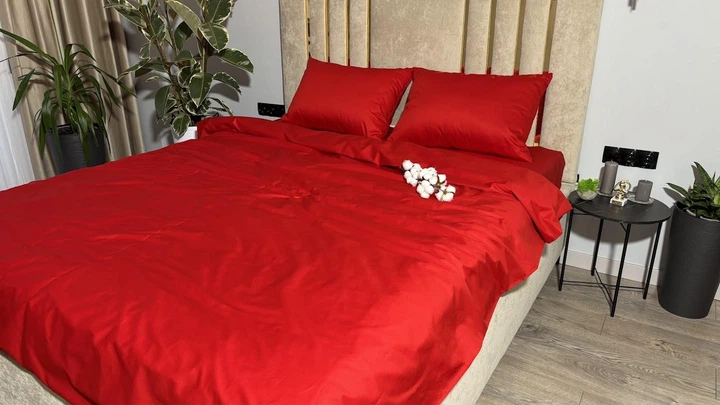 Комплект постільноі білизни MG&Lviv Євро 200*220 сатин червоний