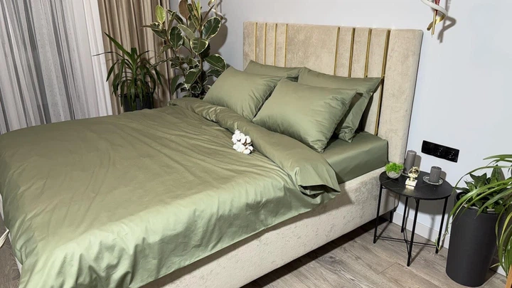 Комплект постільноі білизни MG&Lviv Євро 200*220 сатин оливковий