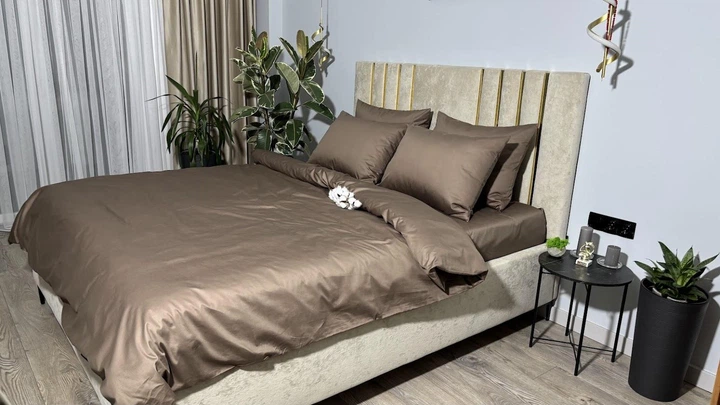 Комплект постільноі білизни MG&Lviv Євро 200*220 сатин коричневий 121