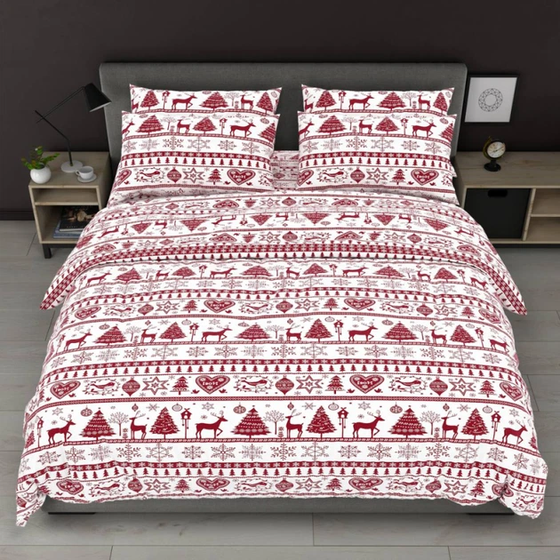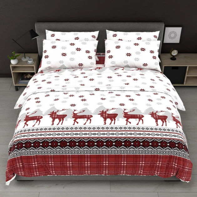 Новорічний комплект постільної білизни Новасон Олені сатин двоспальний 180х220 см наволочки 50х70 та 70х70