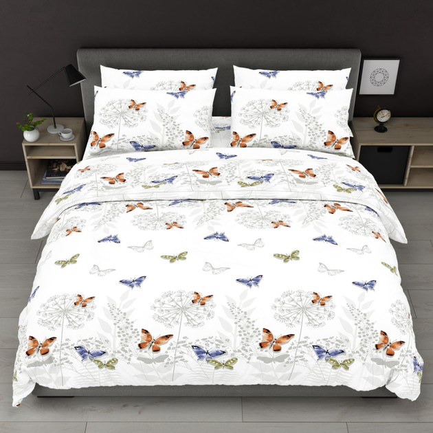 Комплект постільної білизни Метелики сатин двоспальний 180х220 см наволочки 50х70 та 70х70