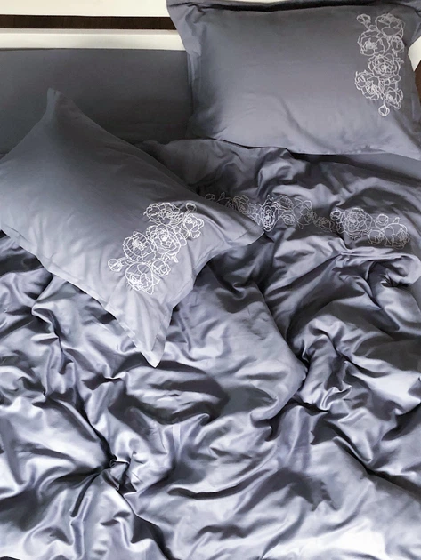 Підковдра Cozy з вишитими білими півоніями 90x120 см Темно-сіра