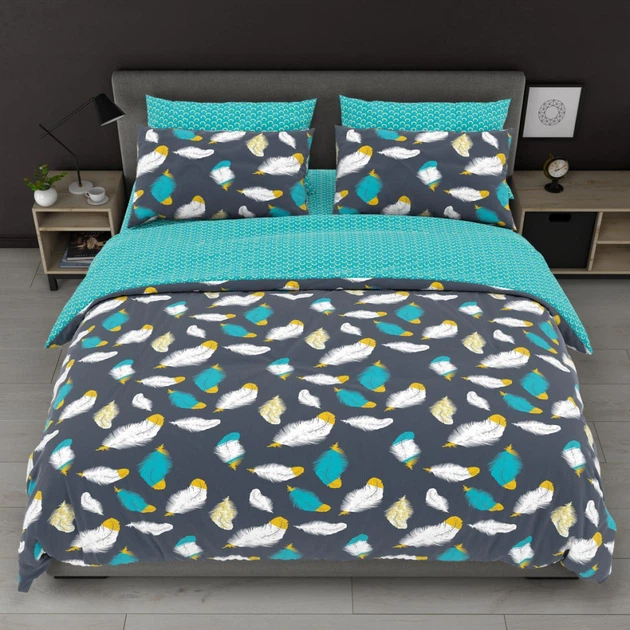 Комплект постільної білизни Пір'я сатин двоспальний 180х220 см наволочки 50х70 та 70х70