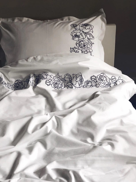 Підковдра Cozy з вишитими сірими півоніями 90x120 см Біла